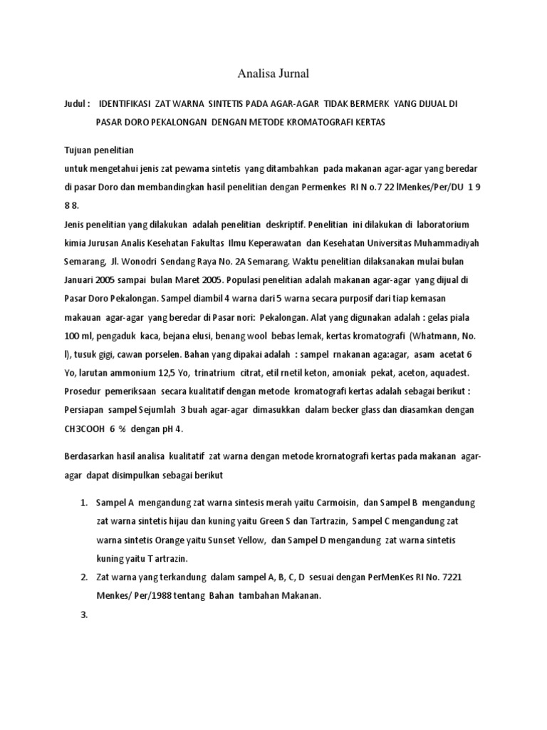 IDENTIFIKASI PEWARNA MAKANAN laporan praktik terbaru ... from 3.bp.blogspot.com Atau zat pewarna makanan yang mengandung zat pewarna ini dapat menimbulkan. Makanan yang berwarna menjadi semakin penting ketika makanan tersebut diperuntukkan bagi kromatografi kertas sudah sering digunakan untuk mengidentifikasi pewarna sintetik pada makanan. Analisis makanan dan minuman i. Oleh karena itu, jangan ragu memakai pewarna makanan. Identifikasi dengan cara survey deskriptif dilakukan untuk identifikasi ada tidaknya boraks, formalin dan pewarna berbahaya pada makanan yang dijual oleh pedagang di kelurahan gebang putih. Super bubur bubur instant bergizi abon sapi. Zat pewarna makanan mengandung carnicogen, tartrazine dan indigotine yang dapat memicu penyakit kanker, kanker kemih, tumor ginjal, tumor tiroid dan komplikasi pada kalenjar andrenal. Zat pewarna makanan dapat dibedakan atas zat pewarna alami dan sintetik.