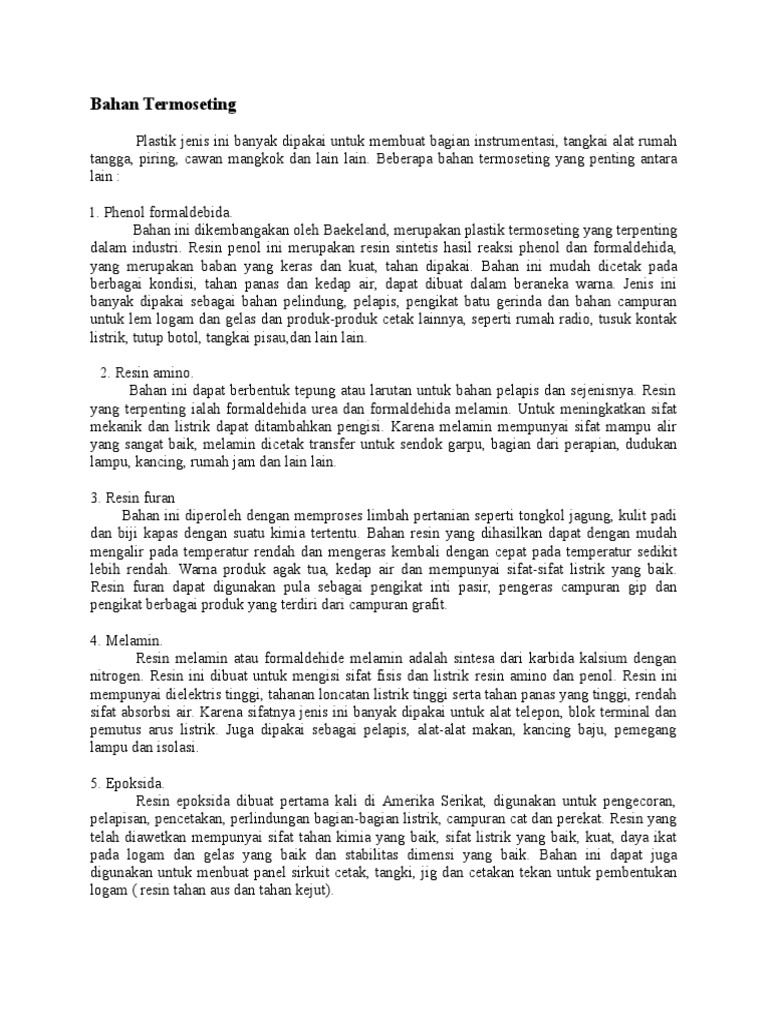 Plastik Termoseting - Plastik adalah polimer murni dengan massa molekul ekstrem.. Thermoset plastics, typically processed by reaction injection molding, contain polymers that combine together during. ^ thermosoftening plastics and thermosetting plastics (pdf). They are different in structure, properties and application areas. They are used when resistance to heat is important (eg kettles, plugs, laptop chargers etc). There are various differences between thermosoftening plastics and thermosetting plastics.